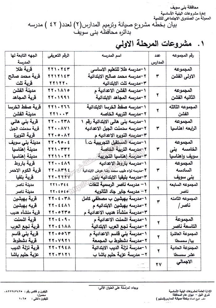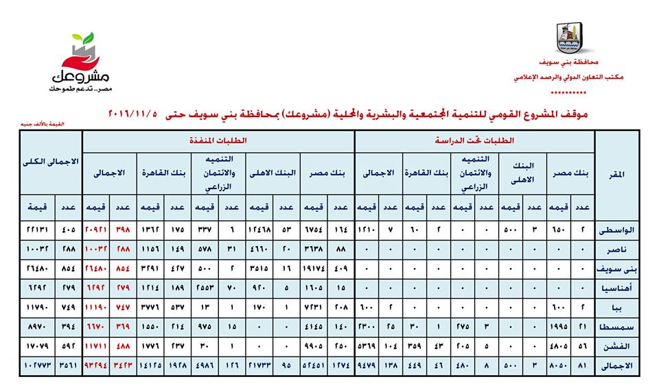 http://www.benisuef.gov.eg/Project/BNSNewsDetails.aspx?id= | Yes | | 12035 | أبرز مشروعات الحكومة بمحافظة بني سويف العام الجاري | 22/12/2016 | الوطن |