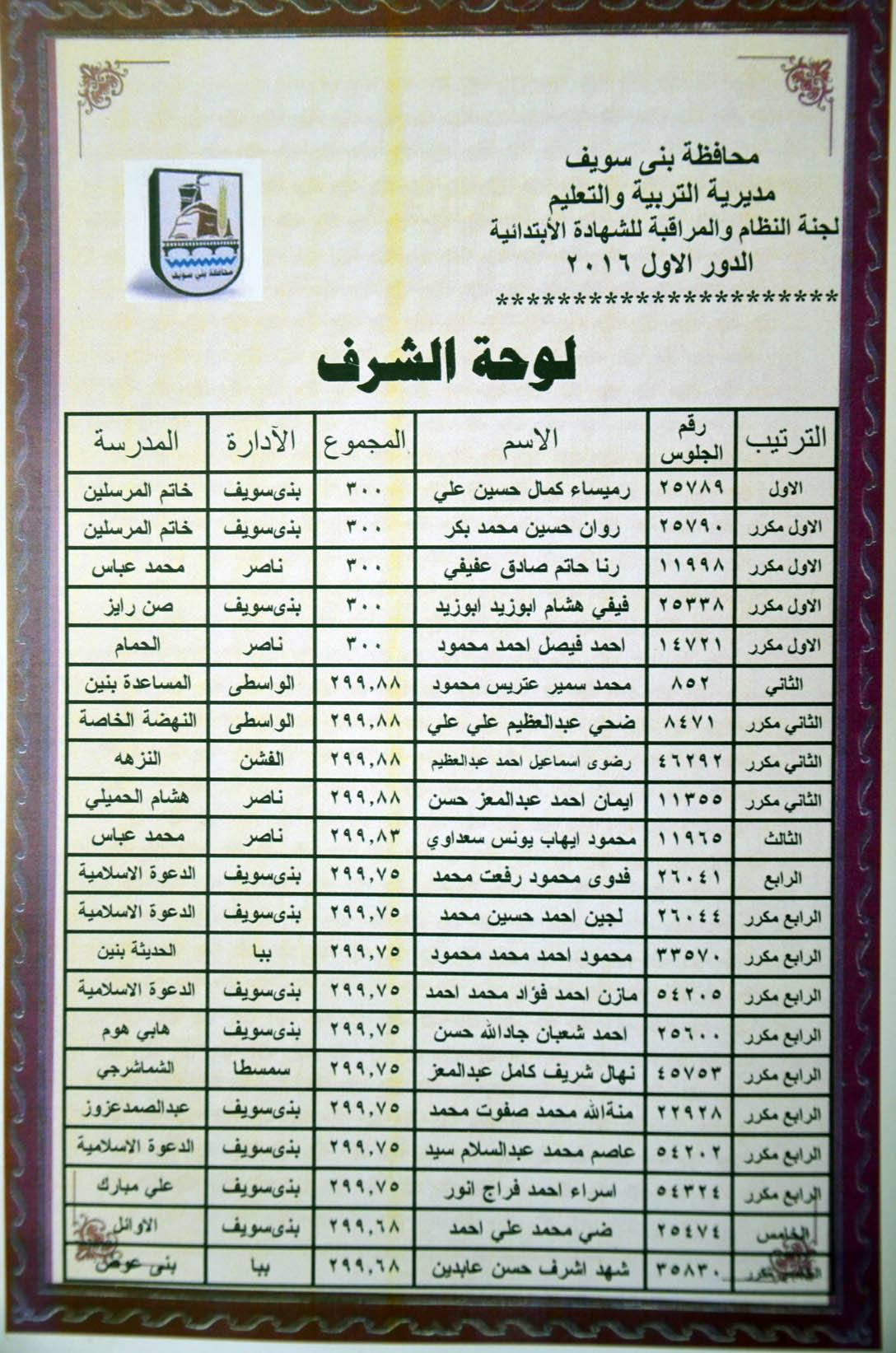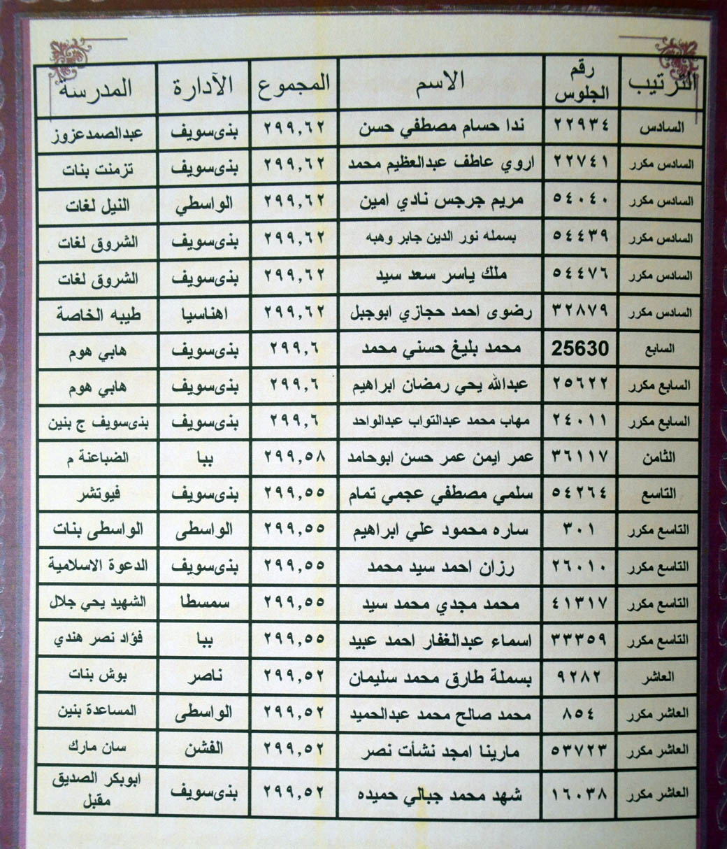 http://www.benisuef.gov.eg/Project/BNSNewsDetails.aspx?id= | Yes | | 12100 | تكريم متفوقي الاختبار التقييمي لفريق مكافحة العدوي ببني سويف (صور) | 31/12/2016 | الفجر |