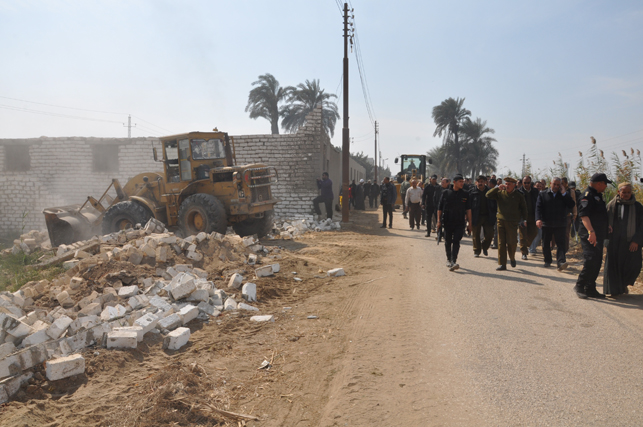 | 2018 | بالصور..تنفيذ 20 قرار إزالة لحالات تعد على أملاك الدولة بمركز بني سويف | 05/02/2015 | | تنفيذا لتوجيهات المستشار مجدي البتيتي محافظ بني سويف أشرف اللواء أحمد رضا الديب السكرتير العام المساعد للمحافظة على حملة إزالة تعديات على أراضي أملاك الدولة بناحية قريتي بياض العرب وتل الناروز شرق النيل مركز بني سويف حيث تمت إزالة 20 حالة تعدٍ عبارة عن مباني مخالفة من مزارع وأسوار وغيرها مشيدة بالطوب البلوك والأسمنت ، حيث شارك في الحملة 5 لوادر من معدات الحملة بالوحدة المحلية لمركز ومدينة بني سويف وفي هذا السياق أكد المحافظ على أن هذه الحملة تأتي في إطار توجهات الدولة ومضيها قدما نحو الحفاظ على أراضي أملاك الدولة من التعدي ومعاقبة أى متعد عليها، إعمالا للقانون وإرساء لسيادة الدولة،مؤكدا على ضرورة استغلال هذه الأراضى وأن يكون هناك تنسيق مستمر مع الجهات المعنية لرصد أى تعديات، والتى سيتم التعامل معها بيد من حديد وبدون تهاون في إطار القانون